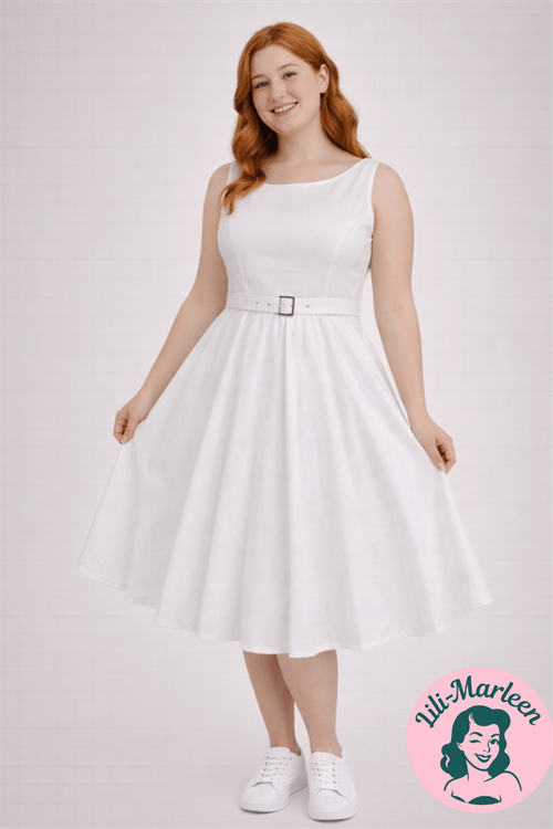 Drøm dig tilbage til en tid med elegance og femininitet med den smukke Audrey Jane swingkjole! 🤍 Denne hvide kjole med et romantisk design, brusende skørt og bælte i taljen fremhæver dine former på den bedste måde. Perfekt til enhver lejlighed – fra fest til hverdag – og med et ekstra skørt kan du skabe et unikt og personligt look.