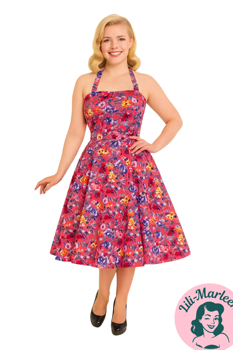 #50erkjole #swingkjole #MissViola #Halterneck #Stedmoderblomster #HeartsAndRoses #SommerKjole #VintageFashion #UnikStil #LiliMarleen