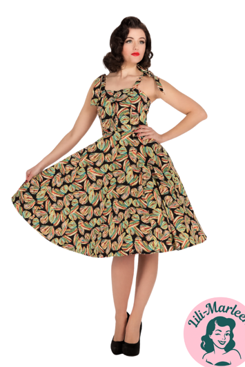 Slip sommerglæden løs med Butterfly Prism Dress fra Heart & Roses London! Denne charmerende kjole er fyldt med dansende regnbue-sommerfugle på sort baggrund – som et magisk prisme af farver. Et feminint snit med justerbare skulderstropper, en front med blanke sorte knapper og et klassisk swingskørt giver et både legende og elegant look.
