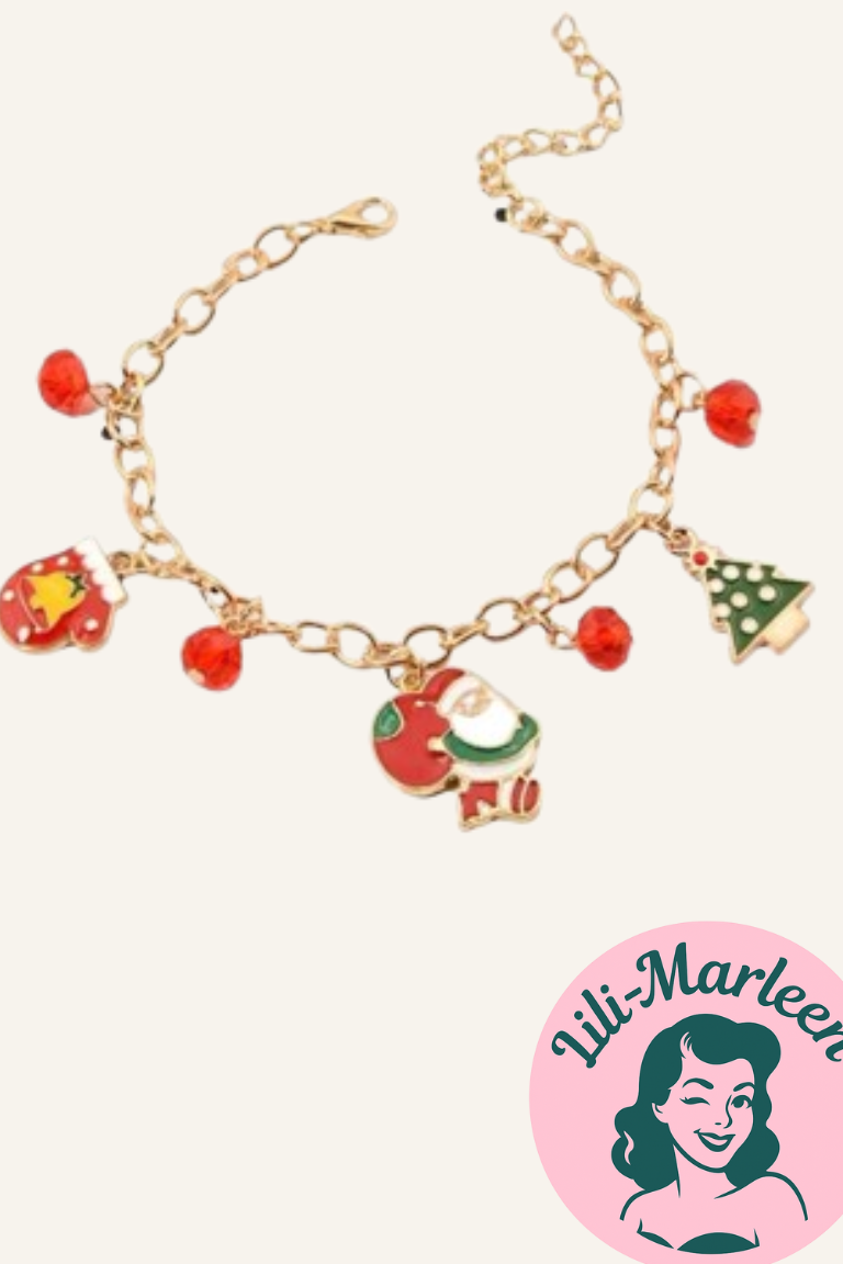 Armbånd – Julecharms i gyldent look - Festligt julearmbånd med farverige charms: Dette charmerende armbånd i gyldent look er pyntet med små, farverige julecharms – en rød vante, et juletræ, en glad julemand samt røde perler, der giver smykket en ekstra glød. Et hyggeligt og legende smykke, som sætter prikken over i’et til julens mange sammenkomster. Detaljer og design Gyldent kædearmbånd Charms: Julemand, juletræ, vante og røde perler Justerbar længde for perfekt pasform Materiale: Metal med emalje og sten Hvorfor du vil elske det Hyggeligt og farverigt juletema Kan styles både til hverdag og fest i december Perfekt gaveidé til jul Information & service Fri fragt ved køb over 800 kr Hurtig levering – så du er klar til jul 14 dages returret fra modtagelse Ingen gebyrer på betaling hos Lili-Marleen Et armbånd, der bringer smil og juleglæde til både store og små