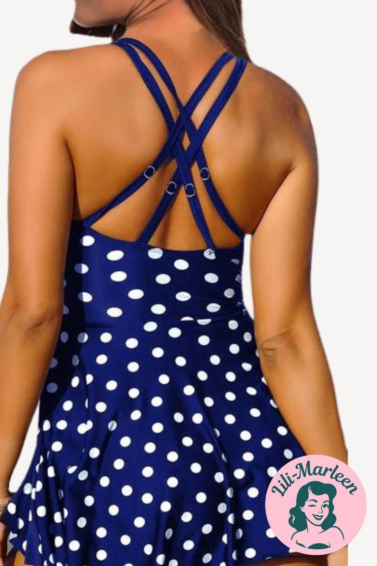 Miss Sola – Blå Badedragt med Hvide Prikker og Skørt