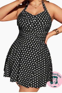 Miss Dottie – Sort Retro Badedragt med Polkaprikker og Indbyggede Shorts