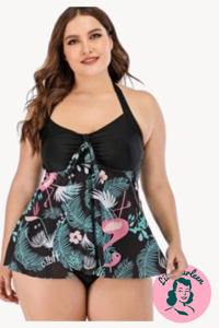 Flamingo Paradise – Sort tankini med tropiske detaljer og skørt