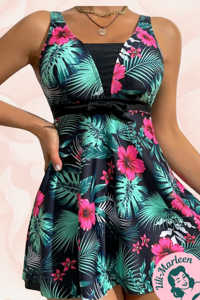 Miss Aloha – Tropisk tankini med skørt og indershorts