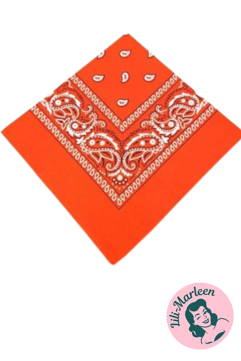 Et tidløst accessory i en stærk og frisk orange farve med det ikoniske paisley-mønster. Bandanaen er perfekt til at give dit outfit et ekstra pift – uanset om du bruger den i håret, om halsen eller som detalje på tasken.