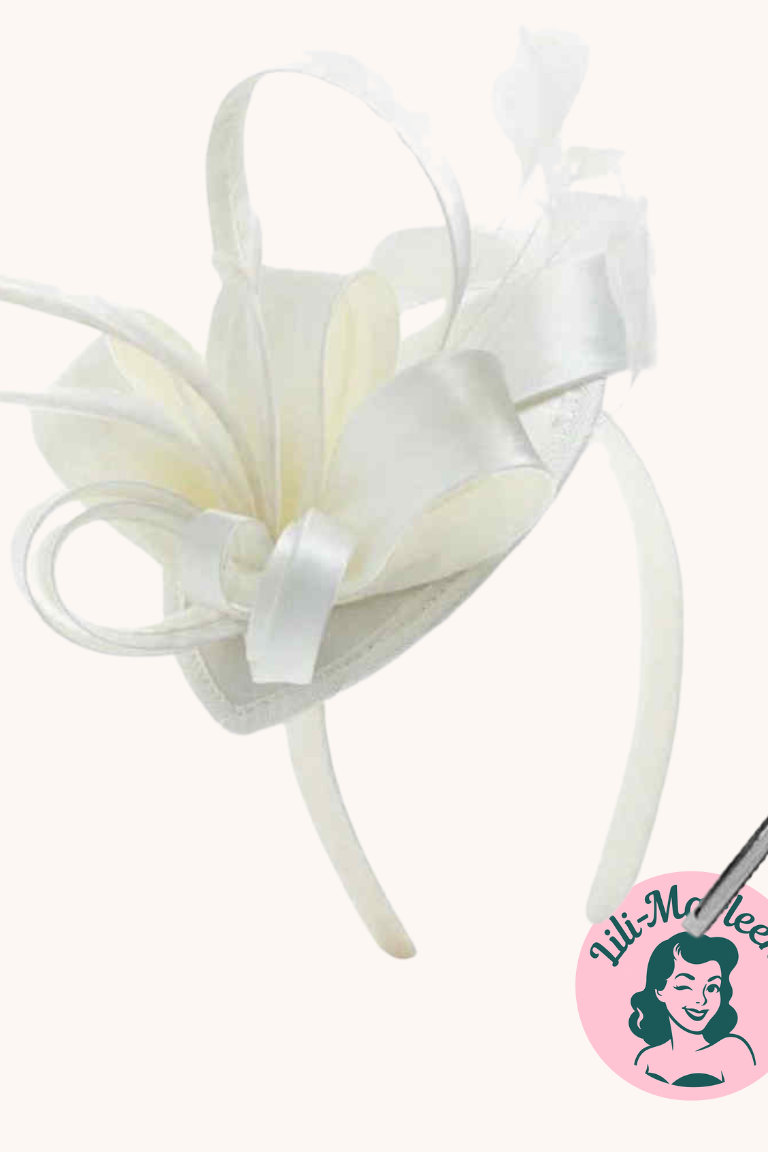 Betager – cremehvid Fascinator på Hårbøjle med Satin og Fjer