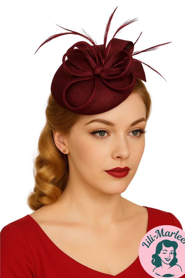 Fuldend dit look med denne elegante betager/hat på hårbøjle i vinrød, der tilføjer et strejf af glamour og femininitet til enhver kjole. Hos Lili-Marleen elsker vi at hjælpe dig med at skabe et fuldendt udtryk, og denne hårpynt er ideel til både fest og hverdag.
