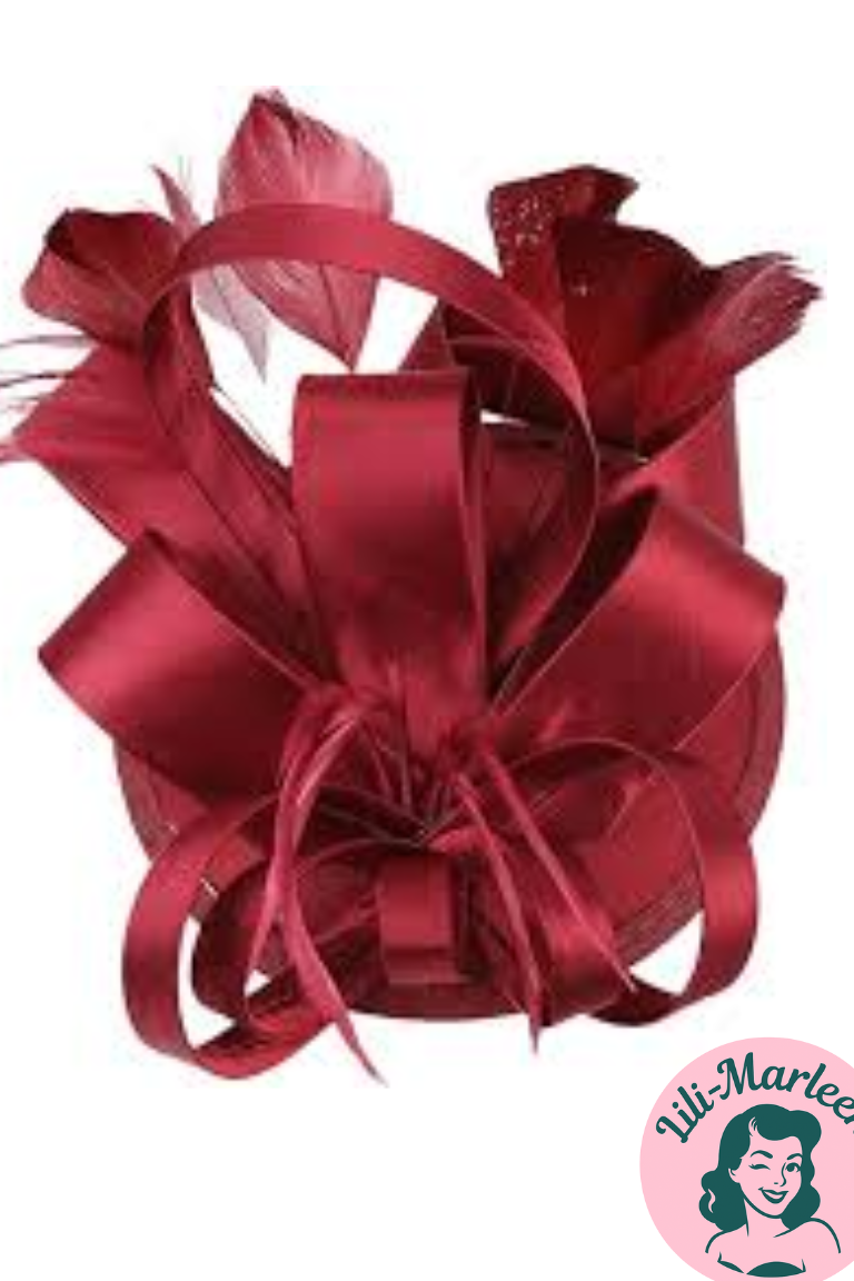 En dramatisk og stilfuld betager, der kombinerer klassisk vintage-glamour med moderne raffinement. Den dybe vinrøde farve, de elegante fjer og den store satin-sløjfe gør denne betager til et sandt blikfang – perfekt, når du vil udstråle selvtillid og stil.