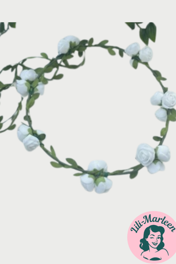 Rosenpoesi er en enkel og romantisk blomsterkrans i klassisk hvid, inspireret af naturens tidløse roser. Kransen er pyntet med små hvide rosenknopper og grønne blade, der giver et delikat og naturligt udtryk. Den er fleksibel i størrelsen og kan bæres af både børn og voksne, alt efter anledningen. Perfekt til konfirmation, bryllup, sommerfest eller fotoshoot.
