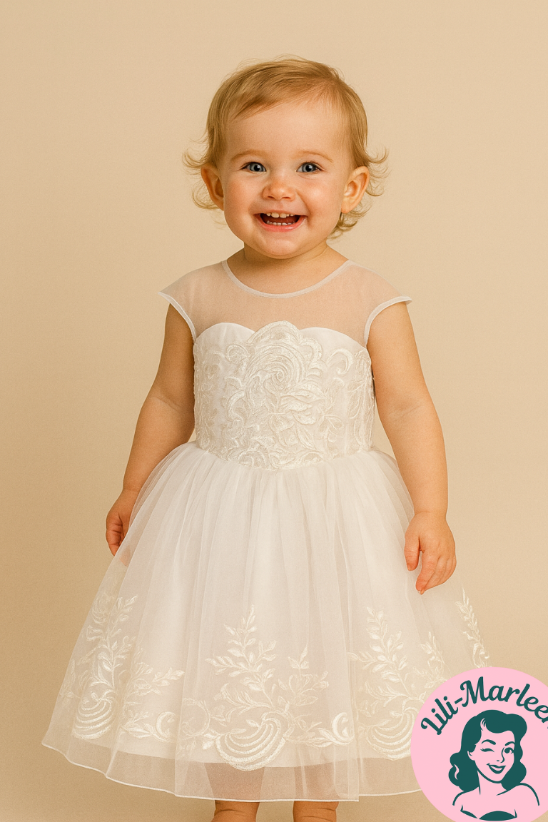 Little Miss Lea – Hvid Fest- og Gallakjole med Palietter og Broderi