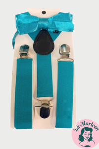 Et festligt og moderne sæt til børn bestående af en butterfly og matchende seler i turkis. Perfekt til at give ethvert outfit et frisk pust af farve. Den skinnende turkisfarvede butterfly tilfører elegance, mens selerne er justerbare og nemme at bruge, så de passer til forskellige størrelser. Et oplagt valg til både bryllup, fødselsdag og andre særlige lejligheder.