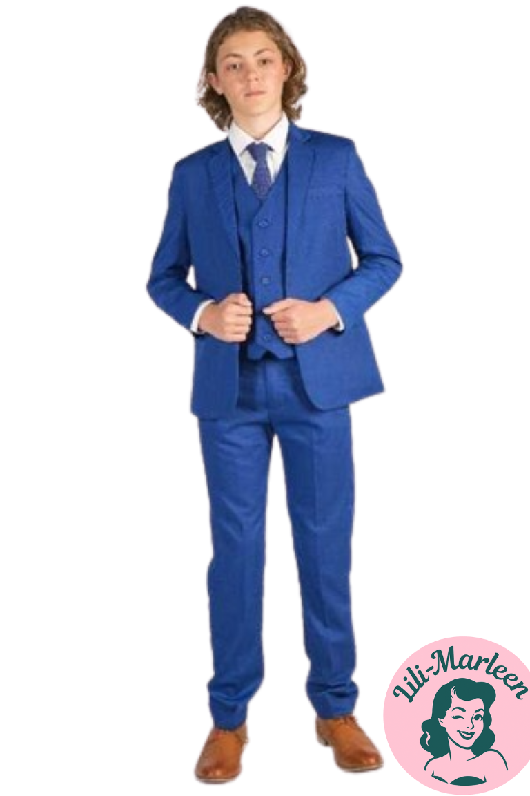 Oliver Max-jakkesættet i kongeblå er til drenge, der tør stå frem – med stil, selvtillid og en farve, der skaber opmærksomhed på den elegante måde.