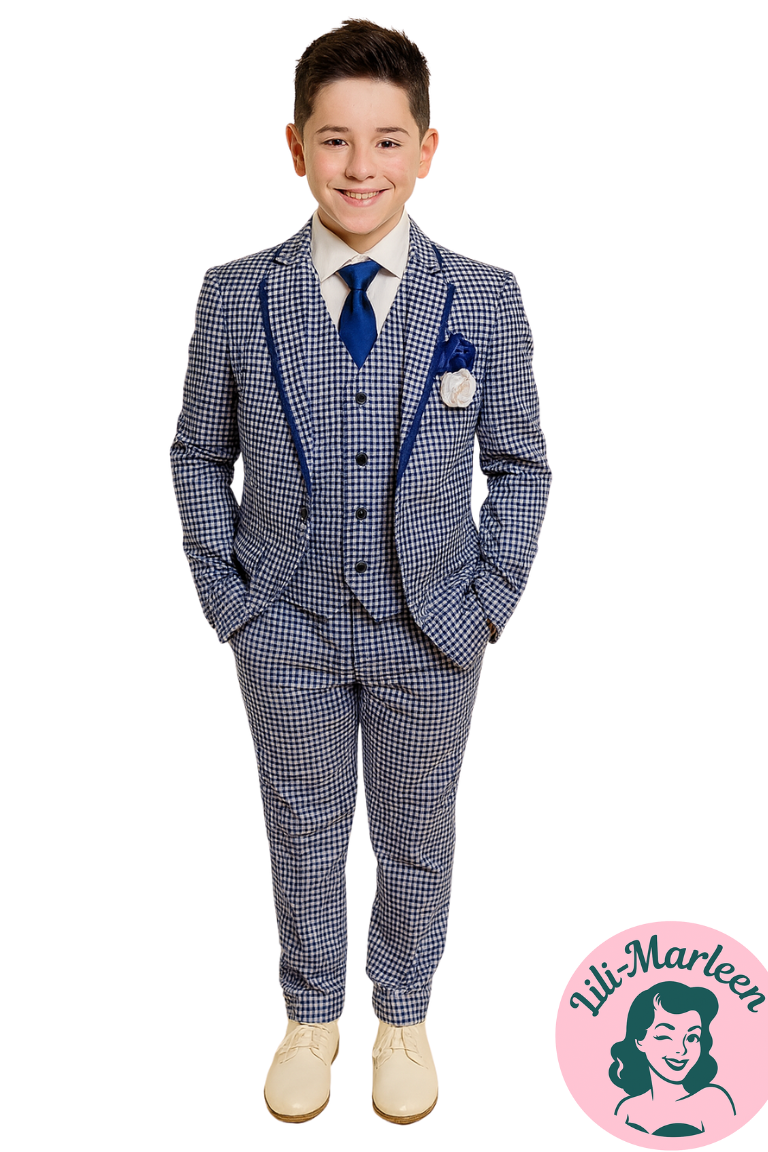 Nija-jakkesættet i tern er til drenge, der vil have et jakkesæt med kant – klassisk elegance møder modig stil.