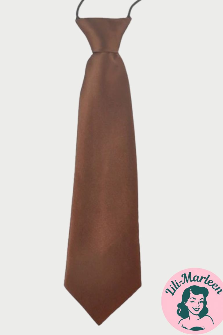Et klassisk og stilrent satinslips i brun til børn – perfekt til at skabe et varmt og elegant udtryk. Den skinnende satinfinish giver slipset et sofistikeret look, mens den brune farve tilfører ro, naturlighed og charme til ethvert outfit. Slipset er lavet i børnestørrelse med elastik, så det er både komfortabelt og nemt at tage af og på. Velegnet til bryllup, fødselsdag, konfirmation, dåb eller som fin accessory til en lille brudesvend.