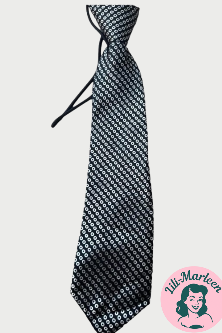 Et elegant og moderne satinslips i mørkt med sølv prikker til børn – perfekt til små gentlemen, der ønsker et klassisk look med et legende twist. Det mønstrede design giver slipset personlighed, mens satinfinishen sikrer et skinnende og stilfuldt udtryk. Slipset er lavet i børnestørrelse med elastik, så det er komfortabelt og nemt at tage af og på. Ideelt til bryllup, konfirmation, fødselsdag, dåb eller festlige lejligheder.