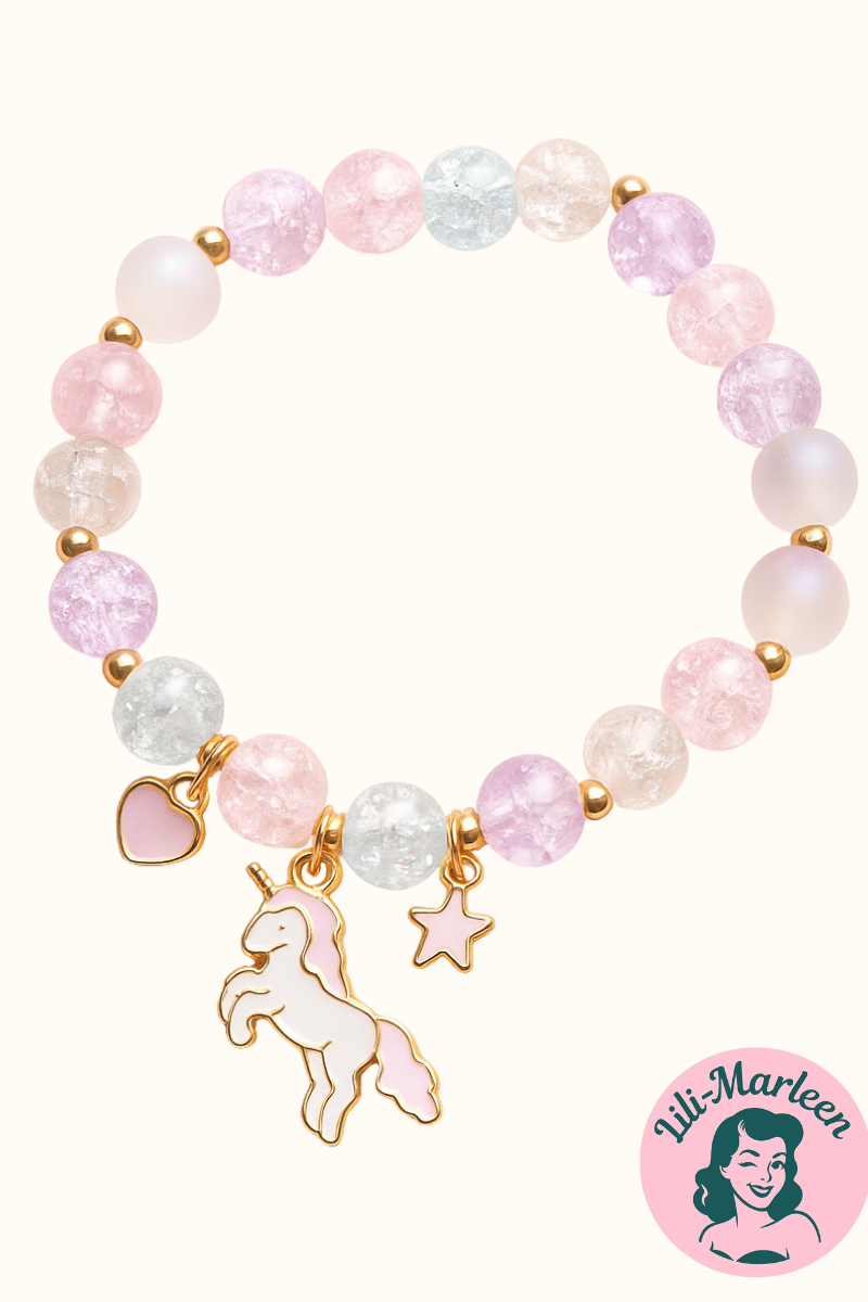 Et sødt og glitrende armbånd, der får ethvert barn til at føle sig som en lille prinsesse eller enhjørningerytter. Let, farverigt og fyldt med glæde – lige som barndommen skal være.