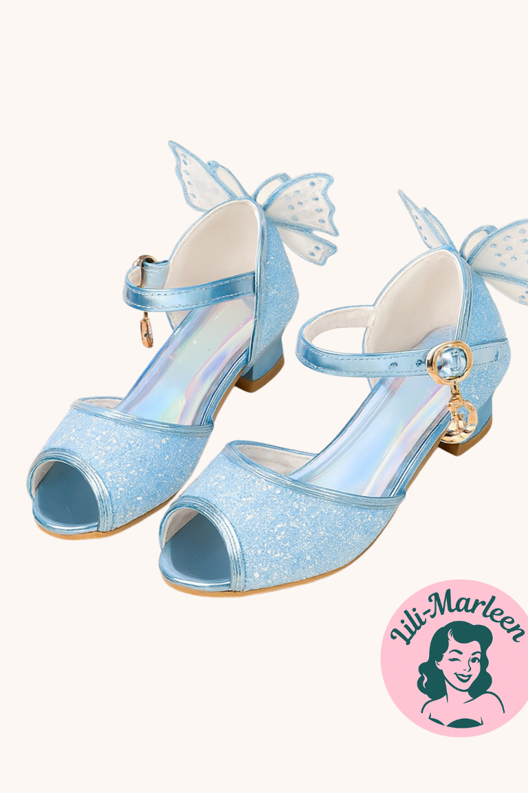 Forvandl hvert skridt til et eventyr med Little Miss Butterfly – de smukkeste lyseblå glittersko til piger, der elsker magi og prinsessestil. De delikate sommerfuglevingedetaljer på hælen og den glitrende overflade gør skoene perfekte til både fest, fødselsdag og udklædning som lille prinsesse.