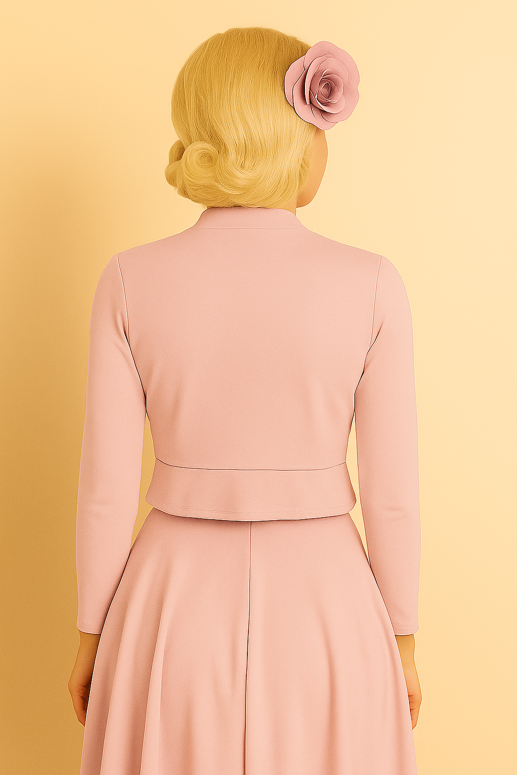 Denne elegante langærmede bolero i en smuk lyserød nuance er designet med en fin detalje bagpå – et lille flæseskød, der tilfører et feminint og romantisk udtryk. Perfekt til både festkjoler og hverdagskjoler, hvor den giver et sofistikeret og charmerende touch.