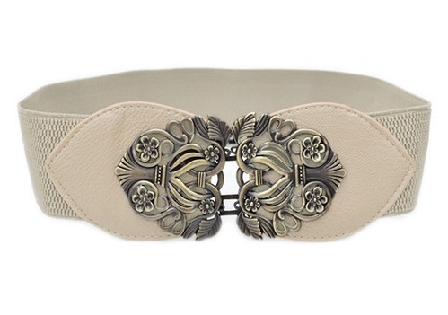 Bredt elastisk bælte: Charlotte; ivory med flot metal spænde; Pift din kjole eller nederdel med top op med et vintage elastikbælte.