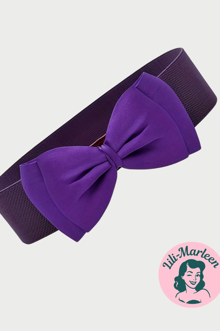 Oplev tidløs elegance og feminin charme med vores bredt elastiske bælte i fortryllende lilla, fuldendt med en luksuriøs satin sløjfe. Dette vintageinspirerede elastikbælte er designet til at bringe en subtil vintage vibe til dine kjoler eller nederdele, og det er en enkel måde at pifte dit outfit op på.
