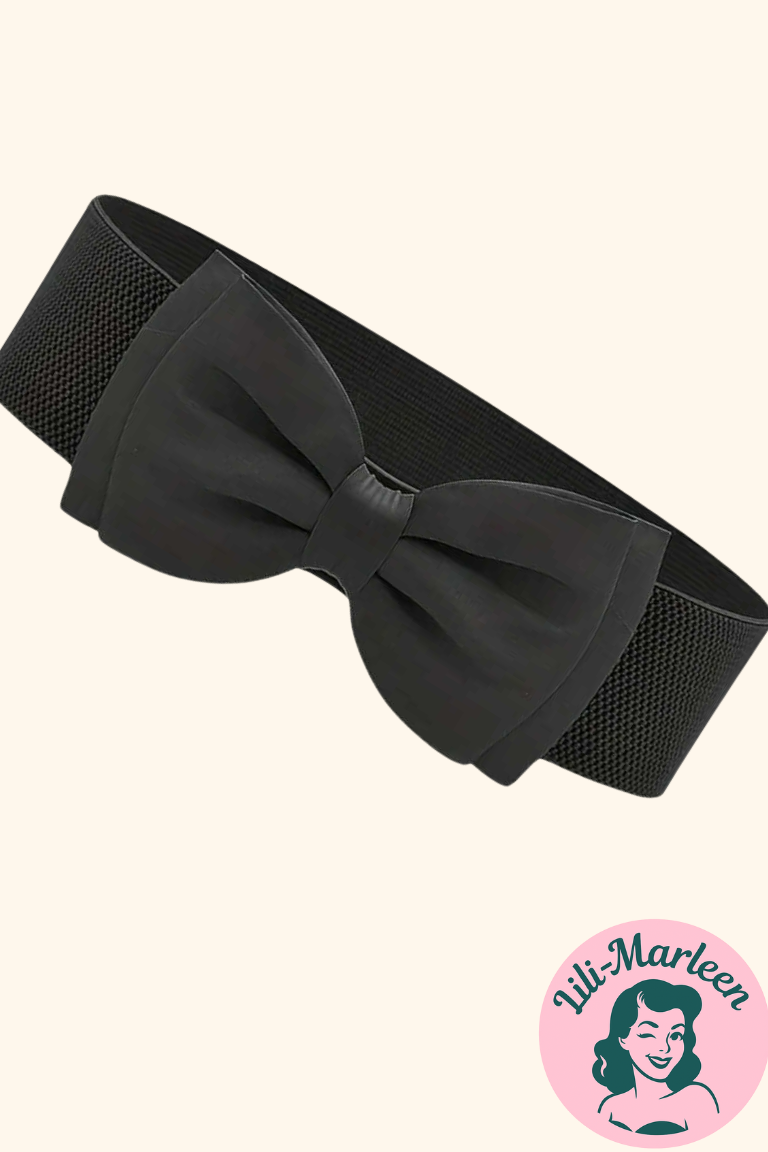 Oplev tidløs elegance og feminin charme med vores bredt elastiske bælte i fortryllende sort farve, fuldendt med en luksuriøs satin sløjfe. Dette vintageinspirerede elastikbælte er designet til at bringe en subtil vintage vibe til dine kjoler eller nederdele, og det er en enkel måde at pifte dit outfit op på.