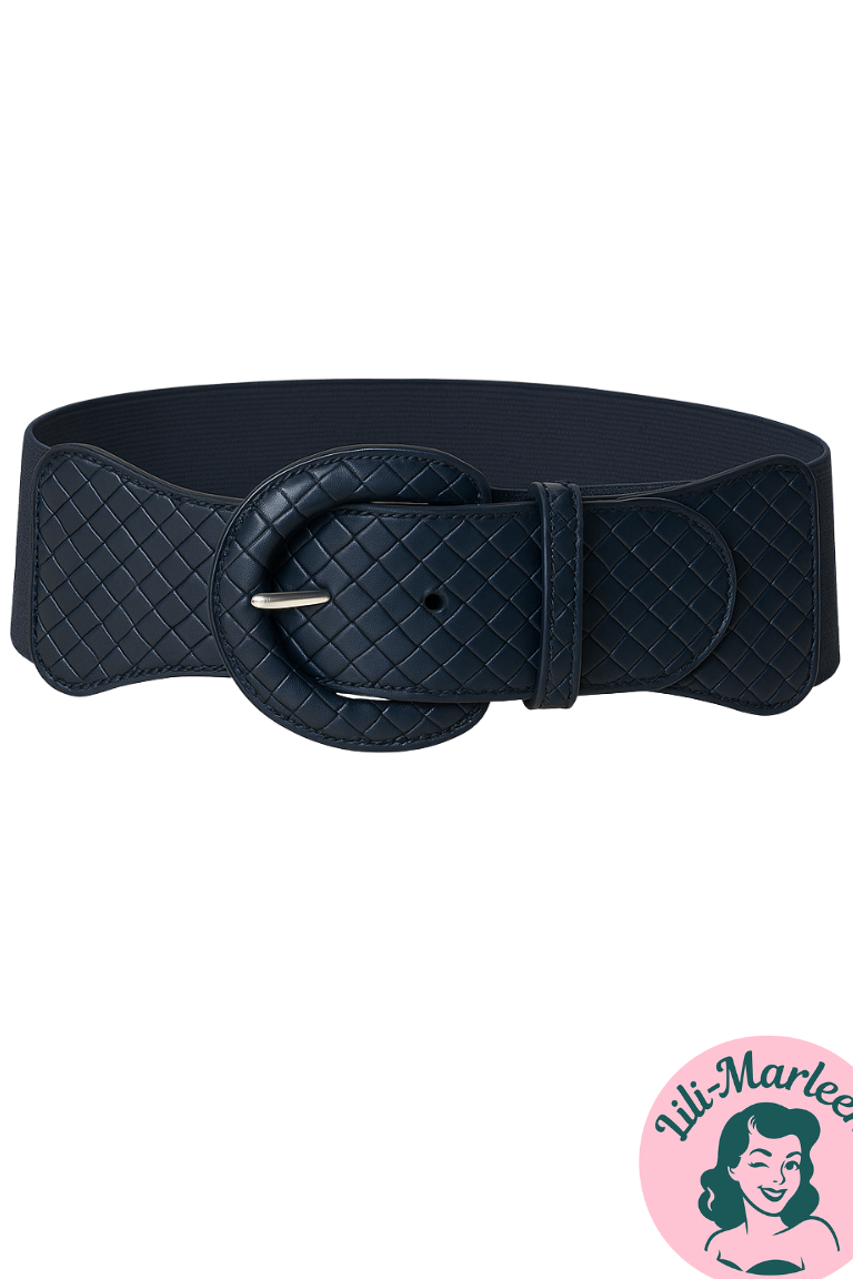 Et bredt elastisk bælte i sort med mat fletmønster, der giver dit outfit et tidløst og vintage-inspireret udtryk. Perfekt til at fremhæve taljen og skabe et elegant look til både kjoler, nederdele og toppe.