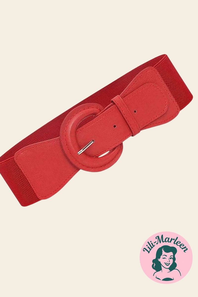 Et selvsikkert og klassisk taljebælte i klar rød lakfinish, der sætter en tydelig streg under figuren. Farven er ren power, formen er vintage, og det runde spænde giver et harmonisk, grafisk udtryk. Det her er bæltet, der gør kjolen færdig – og humøret lidt skarpere.