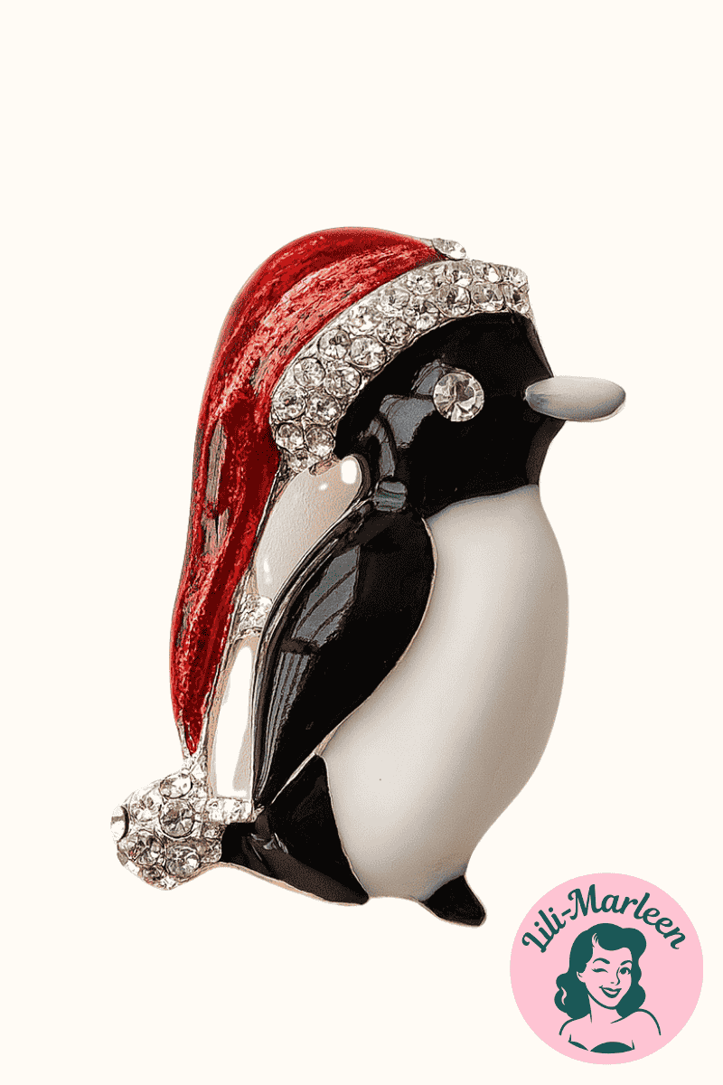 Broche – Silver Penguin – Sølvfarvet pingvin med nissehue