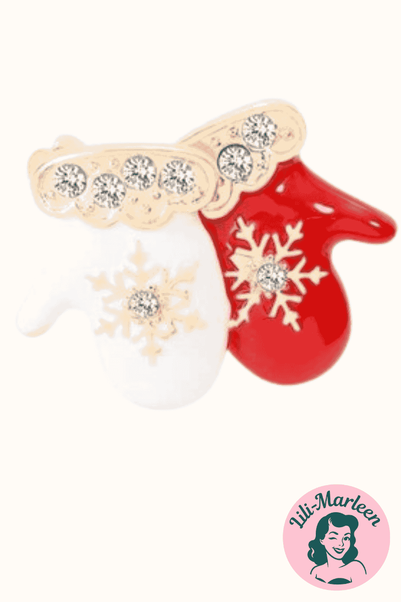 Der er noget uimodståeligt hyggeligt ved Winter Mittens – en broche, der emmer af vintermagi og juleglæde. De to små vanter i rød og hvid symboliserer varme, nærvær og de små øjeblikke, der gør december til noget særligt. Med gyldne snefnug og glitrende sten får den et strejf af vintageglamour, som passer perfekt til dine kjoler, frakker og festlige outfits.