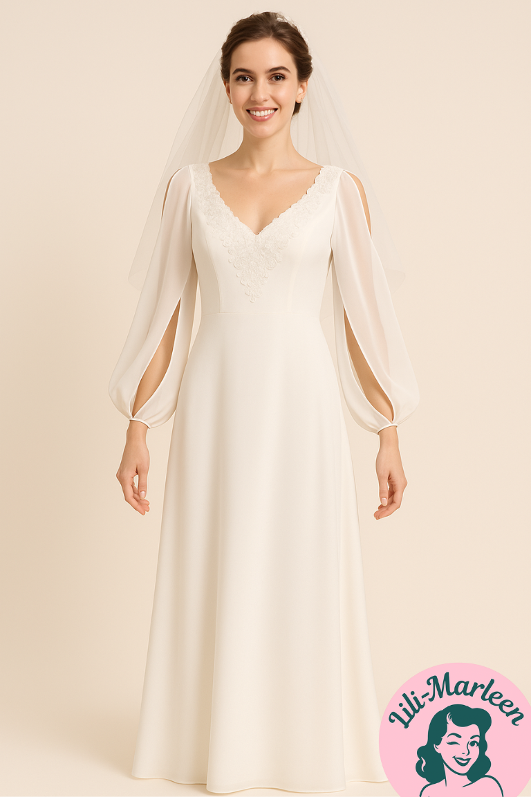 #BrudekjoleSalina #OffWhiteElegance #ChiffonÆrmer #BlødtBroderi #LiliMarleen #RomantiskBrudekjole #Bryllup2025 #TidløsBryllupskjole #BryllupskjolerOnline #FeminineDetaljer