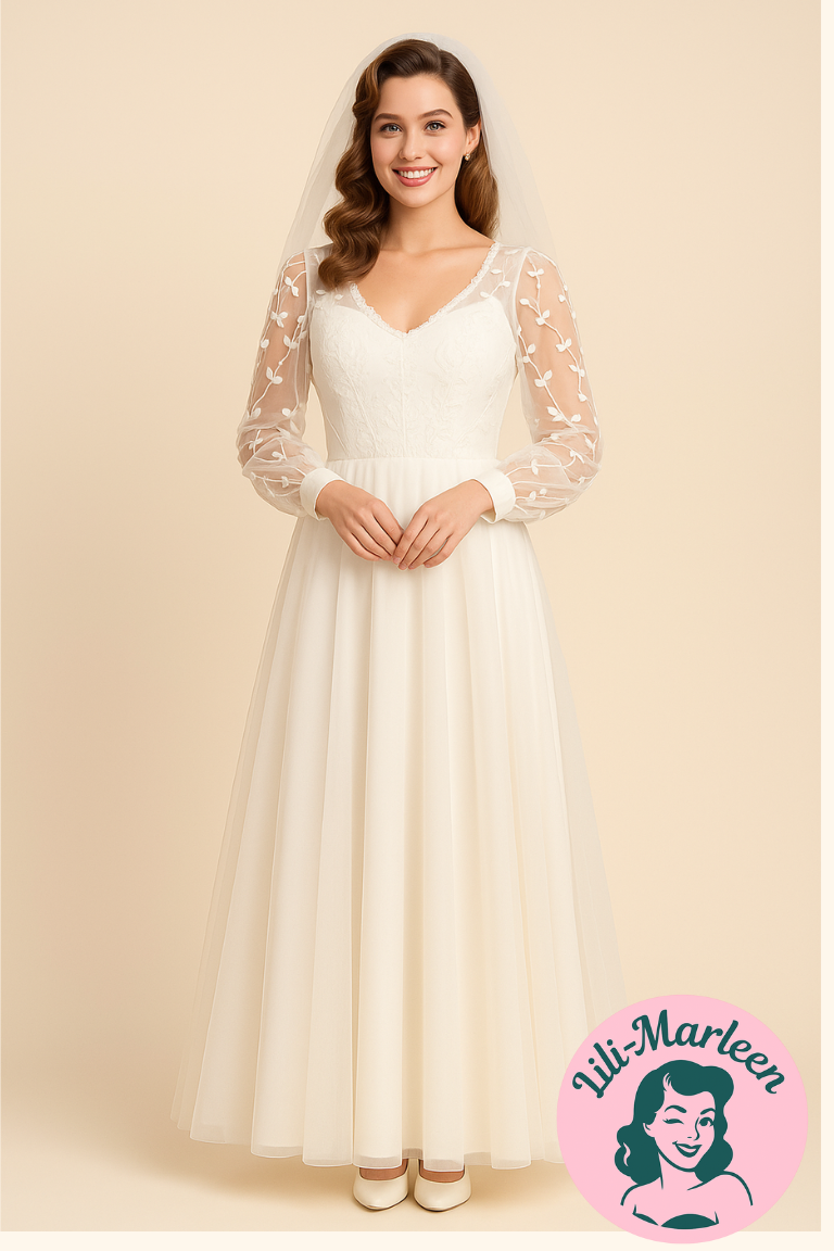 #BrudekjoleUrcelle #RomantiskBrudekjole #OffWhiteElegance #Blondeærmer #ChiffonLag #LiliMarleen #Bryllup2025 #TidløsBryllupskjole #BryllupskjolerOnline #KlassiskOgRomantisk