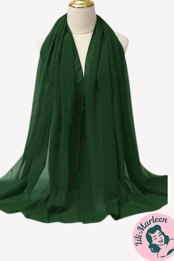 Tilfør din stil dybde og raffinement med dette grønne chiffon-sjal – en klassisk accessory med masser af vintage-vibe. Det bløde og let transparente stof smyger sig elegant omkring skuldrene og fungerer både som praktisk varme og smukt blikfang. Ideelt til alt fra bryllupper og gallafester til hverdagslooks, der skal have lidt ekstra.