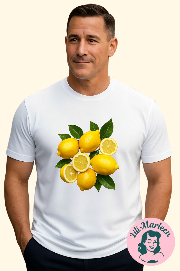 #CitrusCrush #LemonVibes #SummerStyle #MensTee #FriskOgFræk #TshirtMedPrint #LiliMarleenStyle