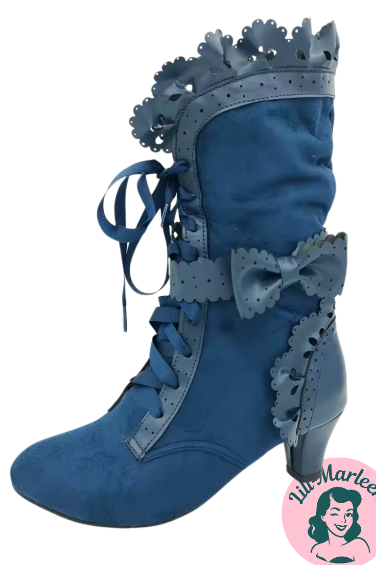 Daniella – Blå Lolita Støvler med Sløjfedetaljer