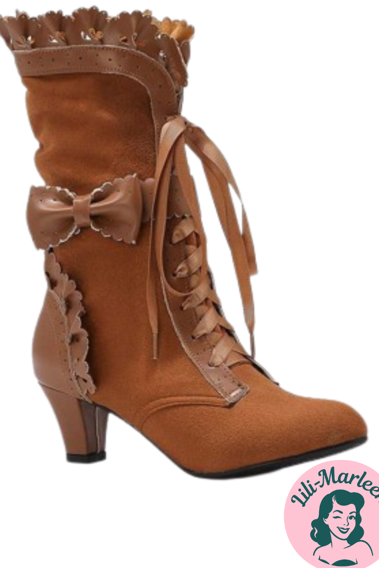 Daniella – Brune Lolita Støvler med Sløjfedetaljer