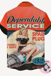 Dependable Service – Rockabilly Herreskjorte med Pinup & Spark Plugs Print