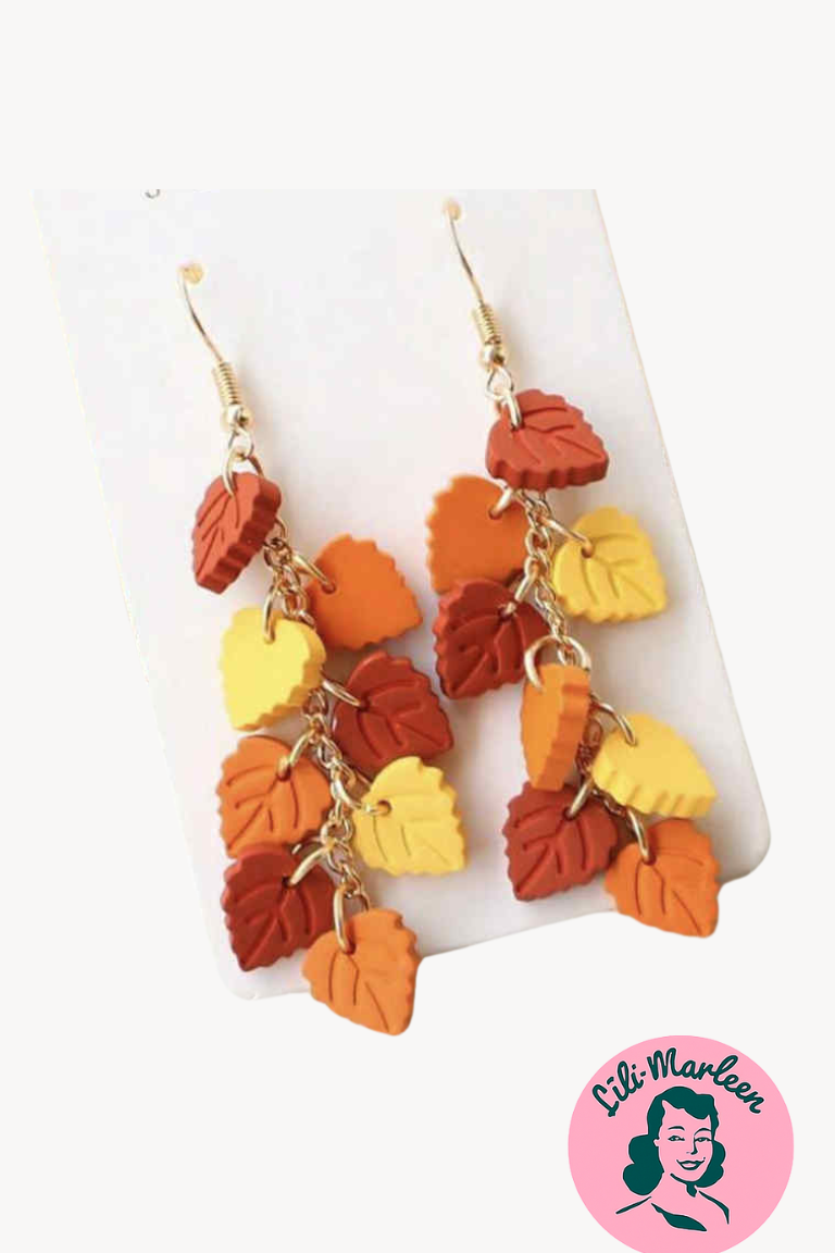 Et par legende og smukke statement-øreringe, hvor små blade i varme toner af rød, orange og gul danser let ned ad kæden. De minder om en stille skovbund i efterårssol, hvor bladene drysser og verden bliver blød og poetisk. Perfekte til dig, der elsker natur, hygge og accessories med en fortælling.