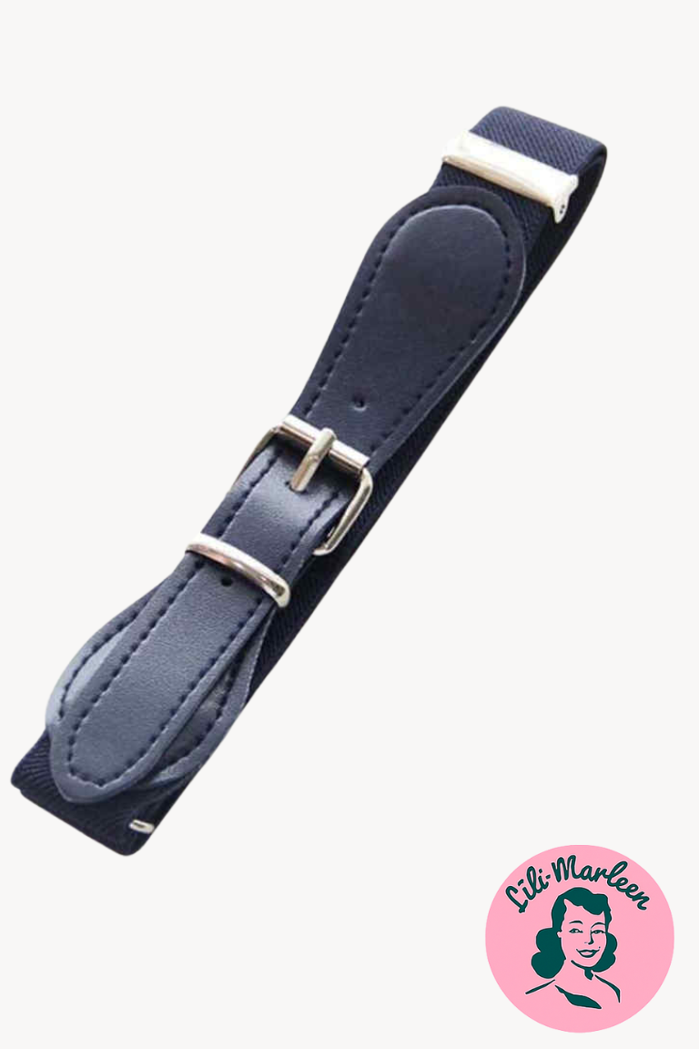 Et elegant elastikbælte i mørk marineblå, der giver børneoutfittet en rolig og stilfuld vintage-vibe. Perfekt til både små damer og herrer, hvad enten det skal bruges til en swingkjole, smarte bukser eller det fine jakkesæt. Et bælte, der diskret fuldender looket – uden at tage barndommens leg fra dem.