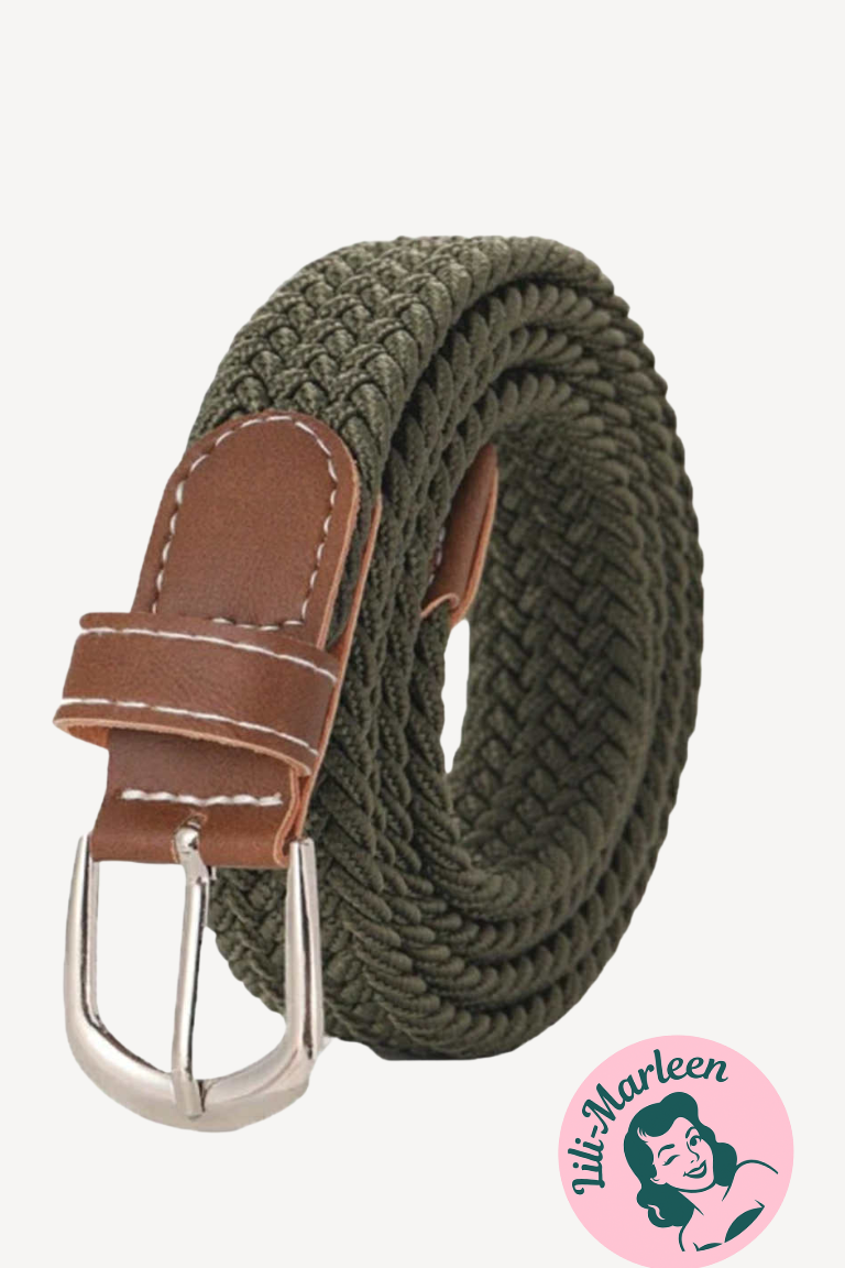 Elastisk Børnebælte i Armygrøn med Læderdetaljer