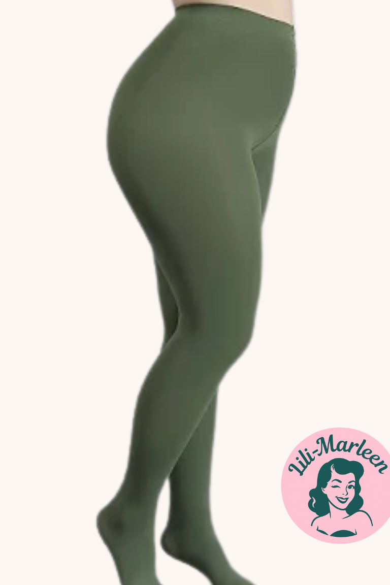 Farvede Strømpebukser – Støvet Grøn Træd ind i vintage elegance med vores smukke støvede grønne strømpebukser, der kombinerer komfort og stil.