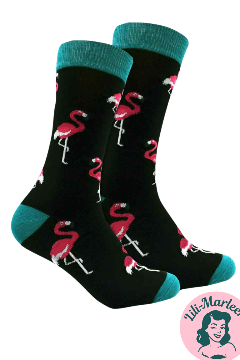 Flamingo Fun – Sorte Strømper med Pink Flamingo Print