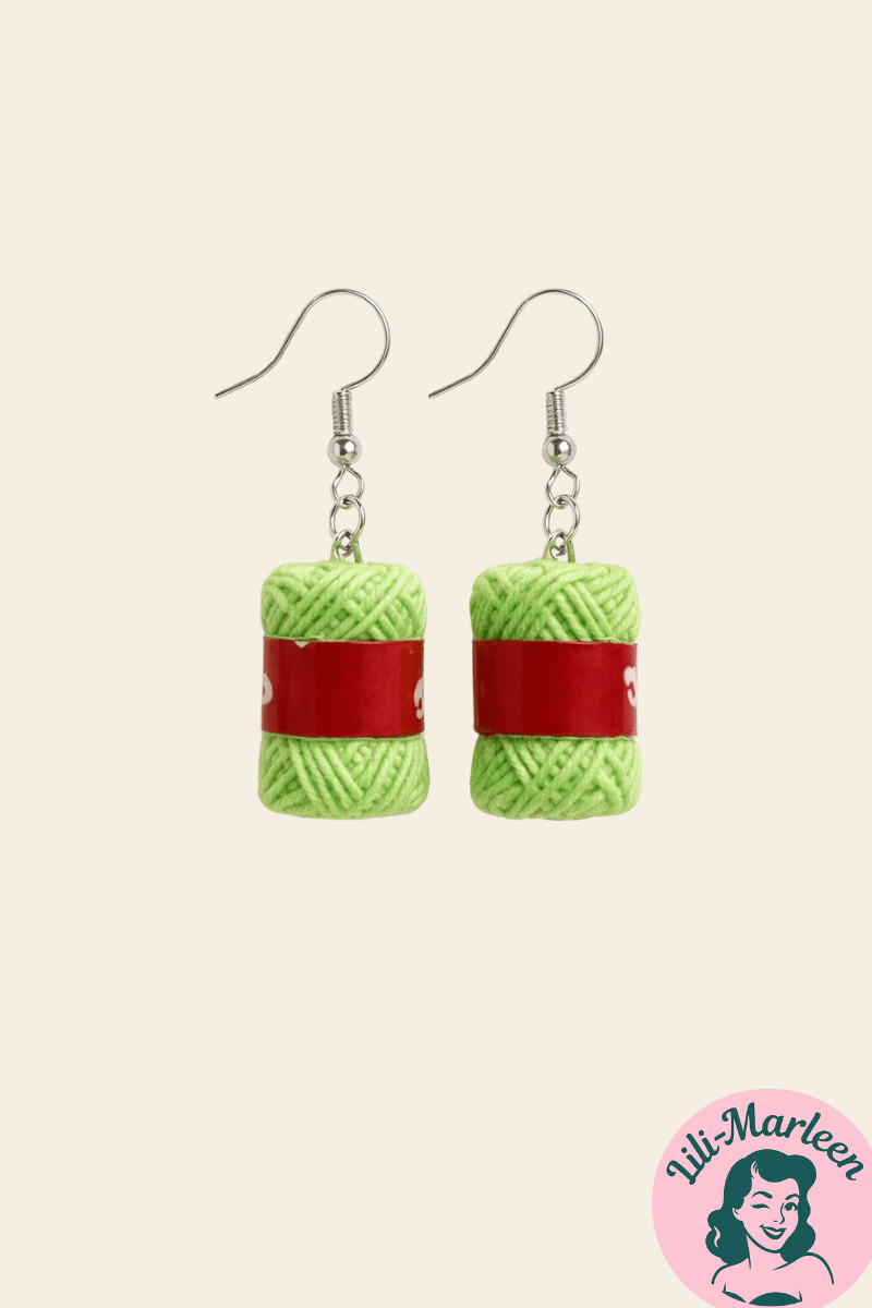 Et par legesyge og charmerende øreringe formet som små garnnøgler i frisk grøn med en klassisk rød etiket. De balancerer humor og nostalgi og er til dig, der elsker håndarbejde, farver og accessories med personlighed. Små, lette og med masser af blikfang – uden at blive fjollede.