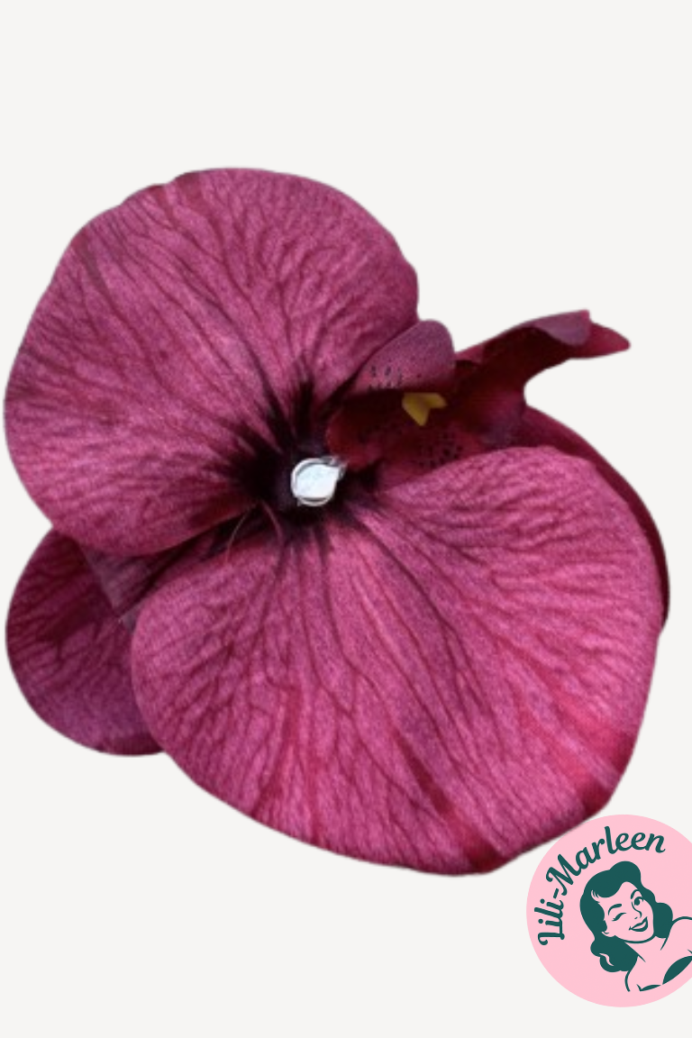 Gigant Orkide Hårclips med Krokodillespænde, vinrød Udover feminint tøj elsker vi alle at pynte os - og denne gigant orkide hårclips er det perfekte tilbehør til at fuldende dit look med lethed og elegance.