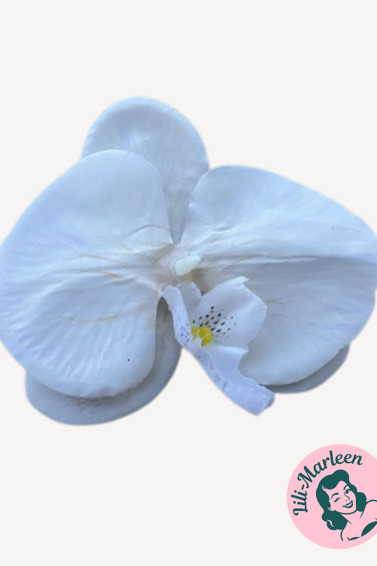 Gigant mørk hvid orkide hårclips lavet i blødt og holdbart plasticmateriale