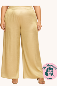 Føj et strejf af glamour til din garderobe med vores Miss Golden Monroe guld bukser. Fremstillet i blød satin med en elastisk talje, er de designet til at være lige så behagelige, som de er elegante. Perfekte til enhver festlig lejlighed, fra cocktailfester til dansenatten.