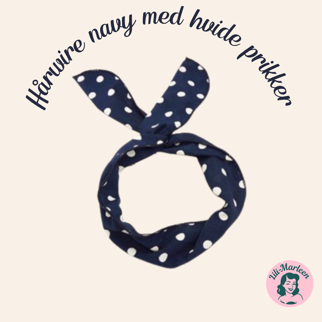 Hårbånd med Wire – Navy med Hvide Polka Prikker