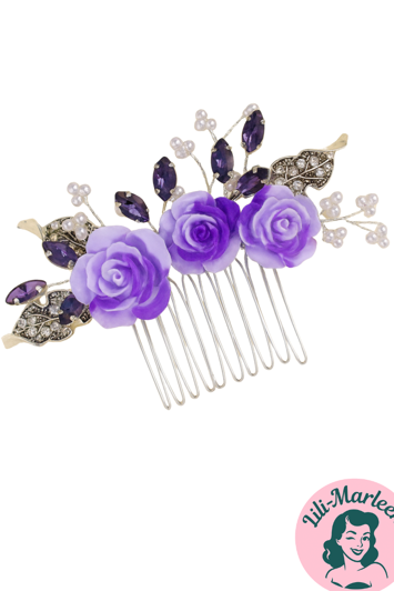 Hårkam med Lilla Roser & Krystalblade – Romantisk Elegance til Dit Look