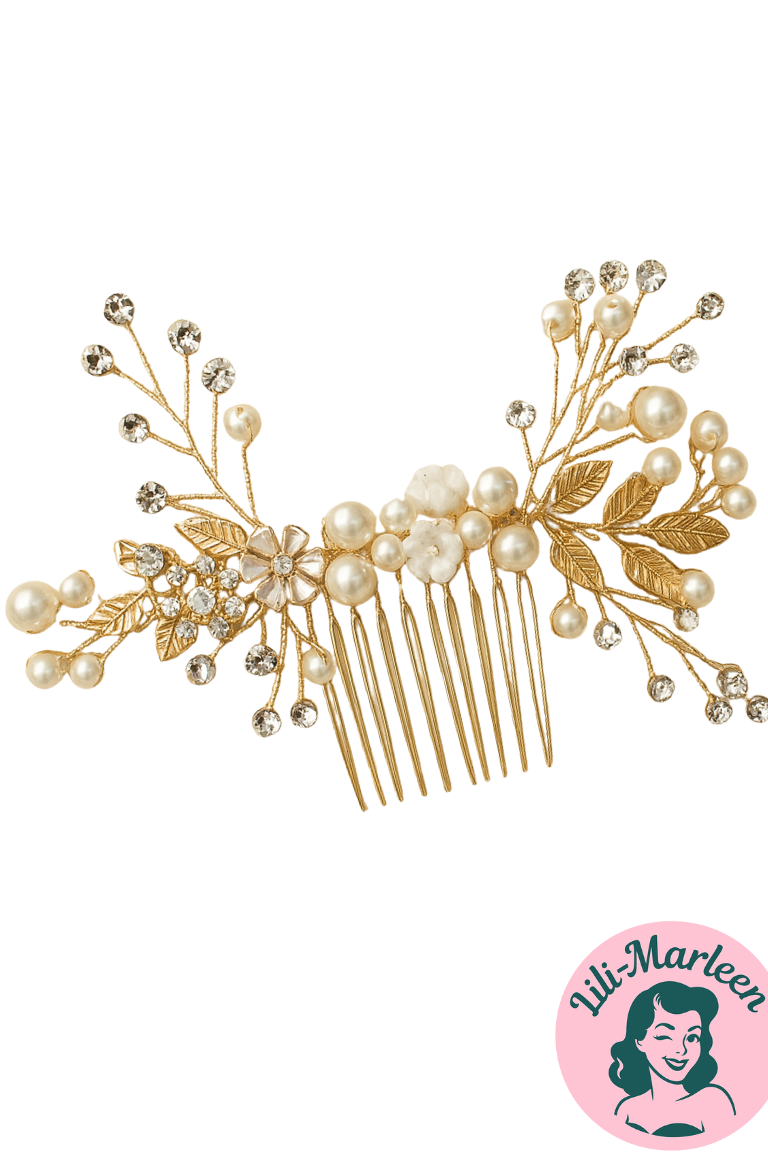 #GoldenPearlBloom #HårkamMedPerler #Brudeaccessory #VintageElegance #Festhårpynt #LiliMarleenStyle