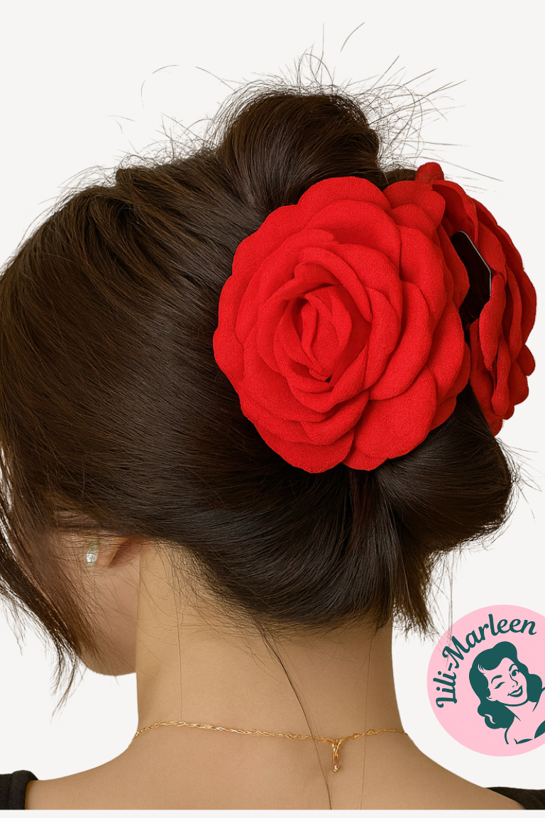 Style dit hår nemt og hurtigt med vores hårklips/hårklemme, der passer perfekt til både hverdag og fest. Den elegante udsmykning med røde roser gør den til et unikt tilbehør, der komplementerer dine kjoler og sko og giver dig et feminint og sofistikeret udtryk.