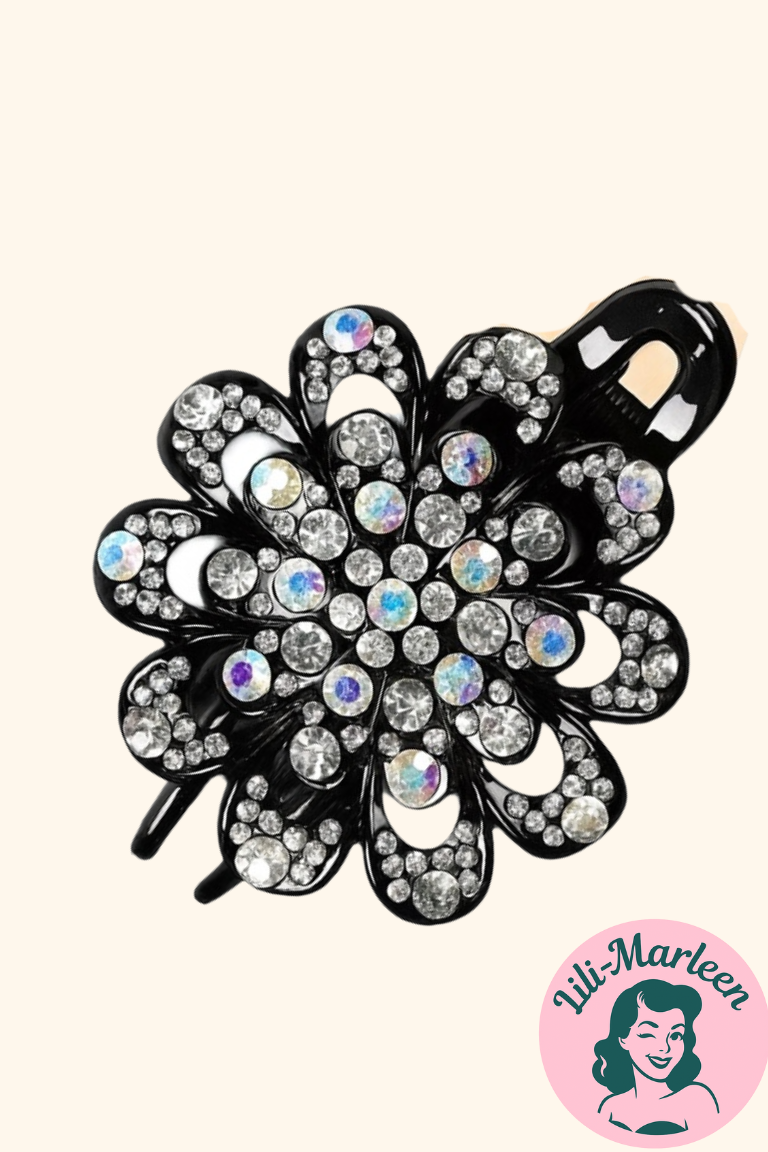 Hårklips/hårklemme - stor blomst med glitrende sten